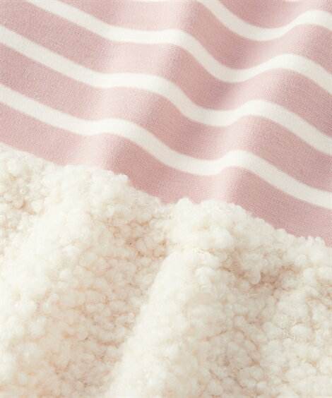 素材 品質=身生地:ポリエステル97%・ポリウレタン3%(カットソー 裏ベロア) ボア部分:ポリエステル100% 別布:ナイロン100% ※リブ部除く 柄の出方が多少異なる場合があります。