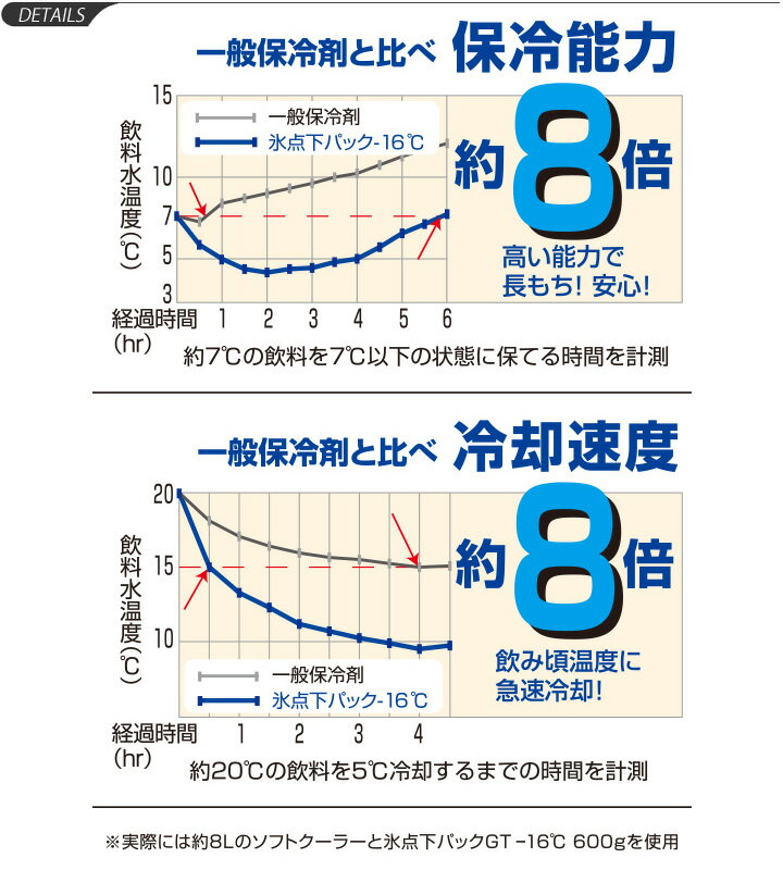(十分な能力が発揮出来ません) ◇8リットルのクーラーボックスで、氷点下パックGT-16℃ハード(600g)1個が目安です。