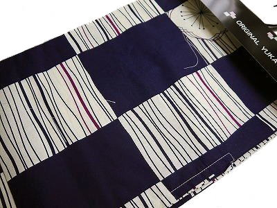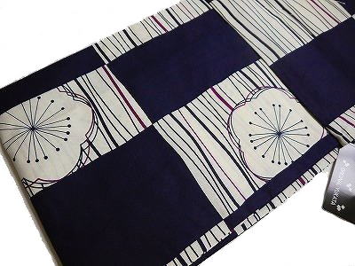 仕立上り 女性用 浴衣 プレタ浴衣 紺と生成りの市松模様に梅の柄 フリーサイズ BL10 毎年、当店でも大変人気のあるおび工房謹製のお仕立て上がりの浴衣です とてもリーズナブルな価格で出品していますので最高のコスパを保証します。
